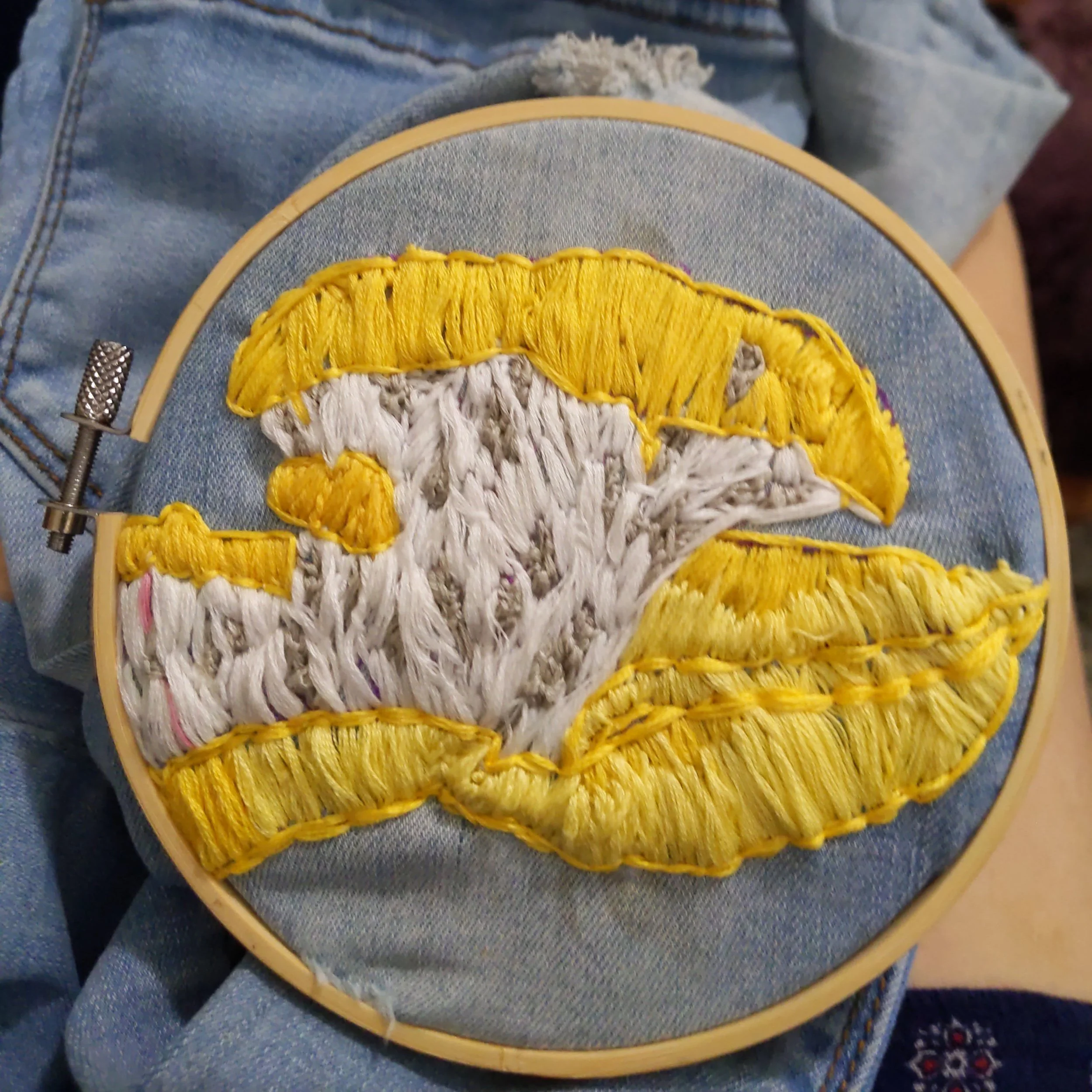 This work explored applique done with original stencils, combined with embroidery stitches. 2024.