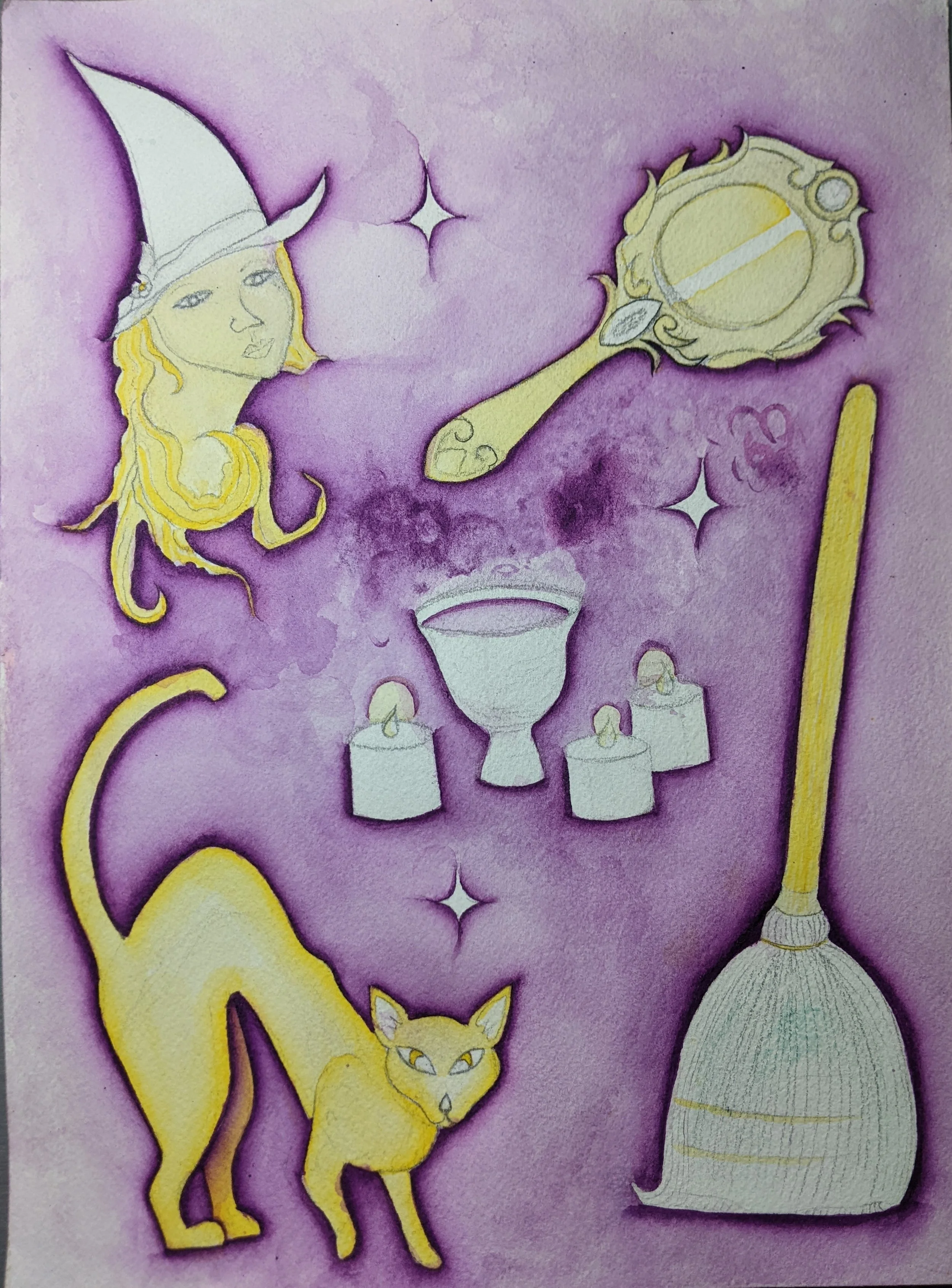 self-portrait based on traditional tattoo flash. liquid acrylic. 2018.